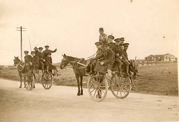 A photo taken during the Civil War. Although the jaunting car was designed for a maximum of four passengers, overloading was apparently common. A comic postcard entitled "The Capabilities of the 'Oirish Jauntin' Car'" depicts a car loaded with the driver, nine adult passengers, three small boys and a pig. But this was no doubt an exaggeration (see www.joyceimages.com).