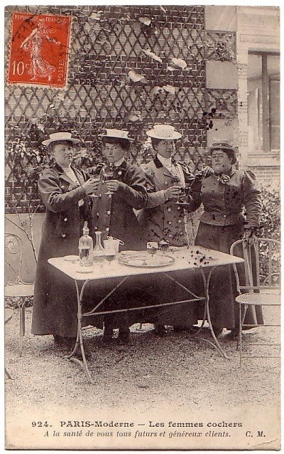Click on the picture to see a larger version. Paris Moderne no. 924 – Les Femmes Cochers Source: www.delcampe.net (Item no. 0007646566). Click here to view source.