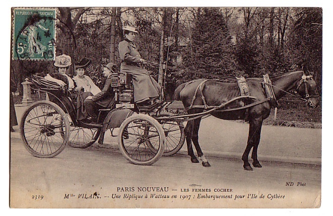 Picture (left): Melle. Vilain – A replica of Watteau in 1907: Departure for the Isle of Cythera. Another allusion to Watteau's painting, this time featuring Melle. Vilain rather than Mme. Moser.