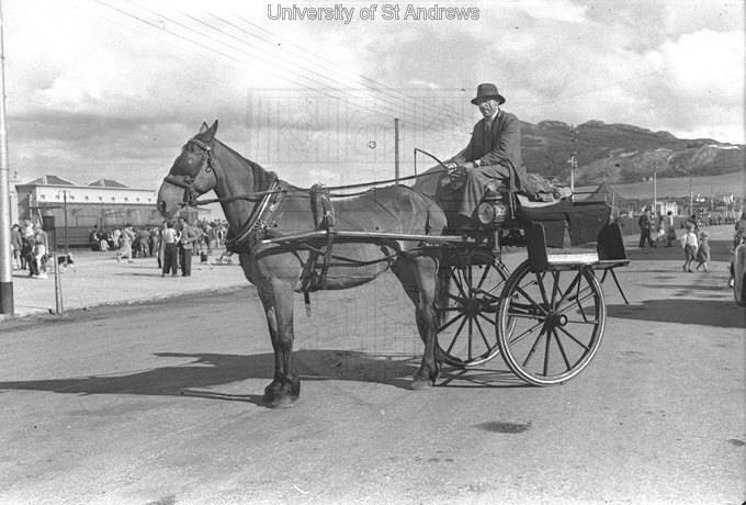 Mr. Kernan's jarvey was probably risking a stiff fine or loss of his license by leaving his horse and vehicle unattended, even though the rolling wheel would soon cause the knotted reins to pull back on the halter if the horse attempted to wander away.
