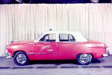 This early colour photo from 1952 features Duffy's Taxi number 5, still wet from a car wash and resplendant with gleaming chrome.
