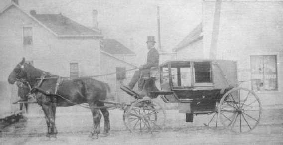 Here's one of A.S. Bardal's earlier cabs, taken in front of his original funeral home. He soon replaced the wooden building with a brick one containing apartments on the second floor. It is still in use as a funeral home and apartment block.
