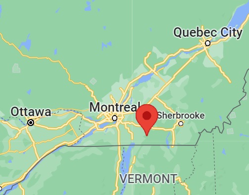 [Next column] Cowansville is about 90 km (56 miles) east of Montréal. (Source: Google Maps