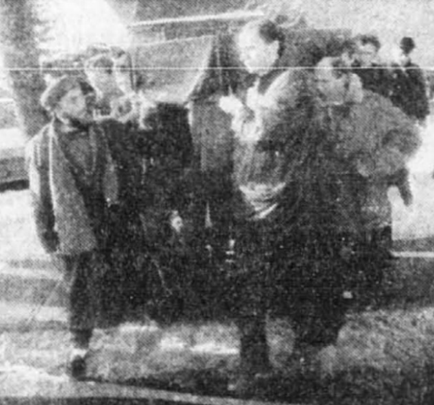 Mourners carry Nizafed Deljanin's coffin to a waiting hearse. (Source: La Presse, December 8, 1995, p. A3 via Bibliothèque et Archives nationales du Québec.)