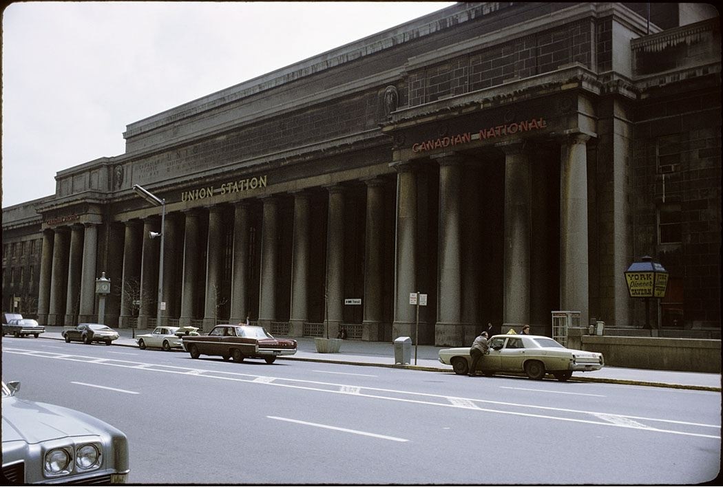 Taxi in front of Union Station, Toronto, May, 1971. Photo by Ellis Wiley. (Source: City of Toronto Archives, Fonds 124 (Ellis Wiley Fonds), File 2, Item 117.