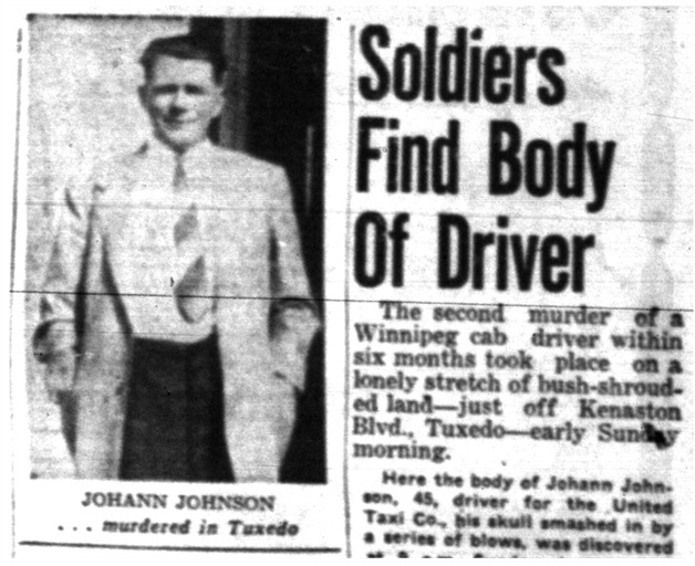 Johann (Jo) Johnson Winnipeg, Manitoba / March 31, 1946 Six months after the murder of Arthur Badger, another taxi driver, Johann (Jo) Johnson, was killed in very similar circumstances. Once again the scene of the attack was a sparsely-populated suburban area, and once again the victim was savagely beaten with a blunt instrument.