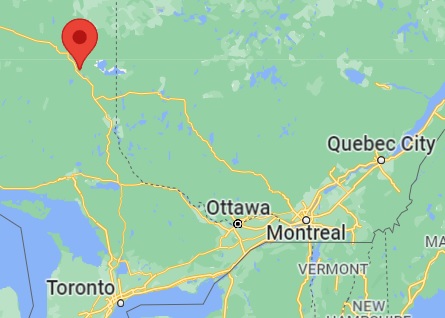Iroquois Falls is 686 km (429 miles) northwest of Ottawa. (Source: Google Maps