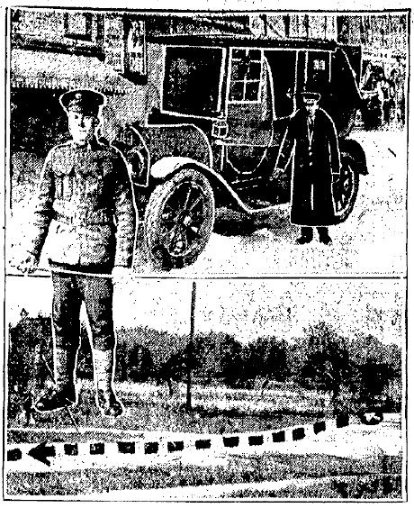 [Next column] John G. Rolland, his taxi and the murder scene. (Source: Toronto Daily Star, November 5, 1919, p. 3)