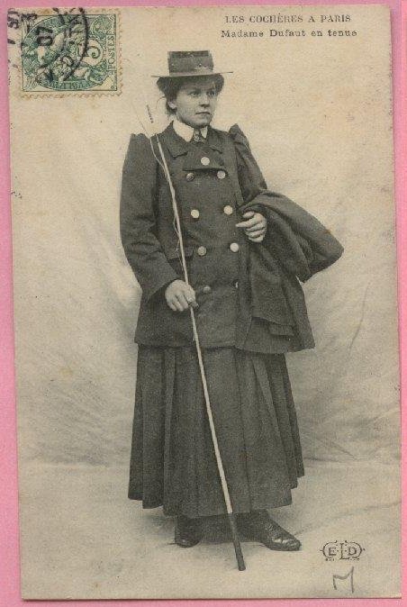 In November, 1906, three women began a month-long apprenticeship in preparation for the Prefecture of Police examination that would qualify them to drive horse cabs in Paris. Several other women were accepted into the apprenticeship program soon afterward.