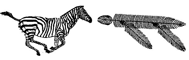 The symmetrical transverse stripes shown by many vertebrates are an evolutionary puzzle that may be explained under the proposed model. On the same common-sense grounds on which we should reject the gradual elaboration of segmented skeletons, let us reject the idea that the stripes of zebras (for example) have arisen gradually through through natural selection of the positioning of random blotches of coloration.