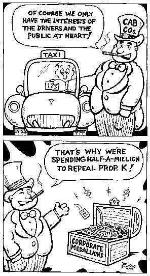 Prop. K proponents suspect it will be the mayor who will quietly put the measure on the ballot – which he can do without board approval or even a public hearing. They should be worried: Yellow Cab Cooperative and Luxor Cabs together gave nearly $50,000 in soft money to help Willie Brown's campaign, according to campaign filings.