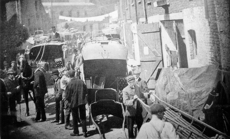The Cab Yard.Drivers rented their cabs and horses from the cab yards. Drivers who owned their own cabs might also rent parking and stable facilities here.