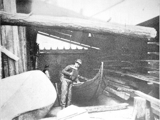 The builder. Photo by Gribayedoff."We glided... to the building-shed, where lay dozens of gondolas, side or bottom up, basking in the hot sun, their noses in the water. A huge pitch-kettle bubbled, sending up coils of thick smoke and spreading an acrid odor. Busy men, with naked breasts and legs, hammered and sang. It was the birthplace of the gondola."