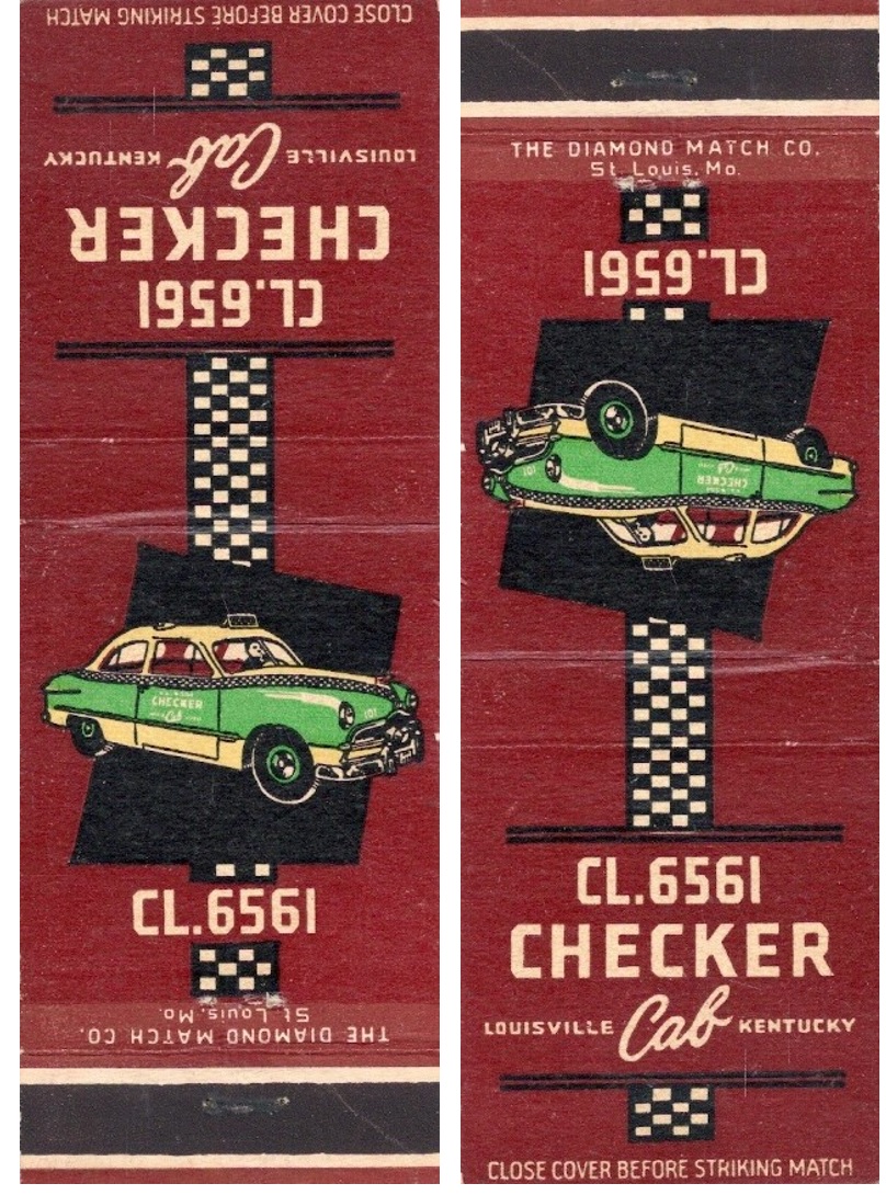 A nicely-designed ad for Louisville Checker, but why does the cab have only two doors?