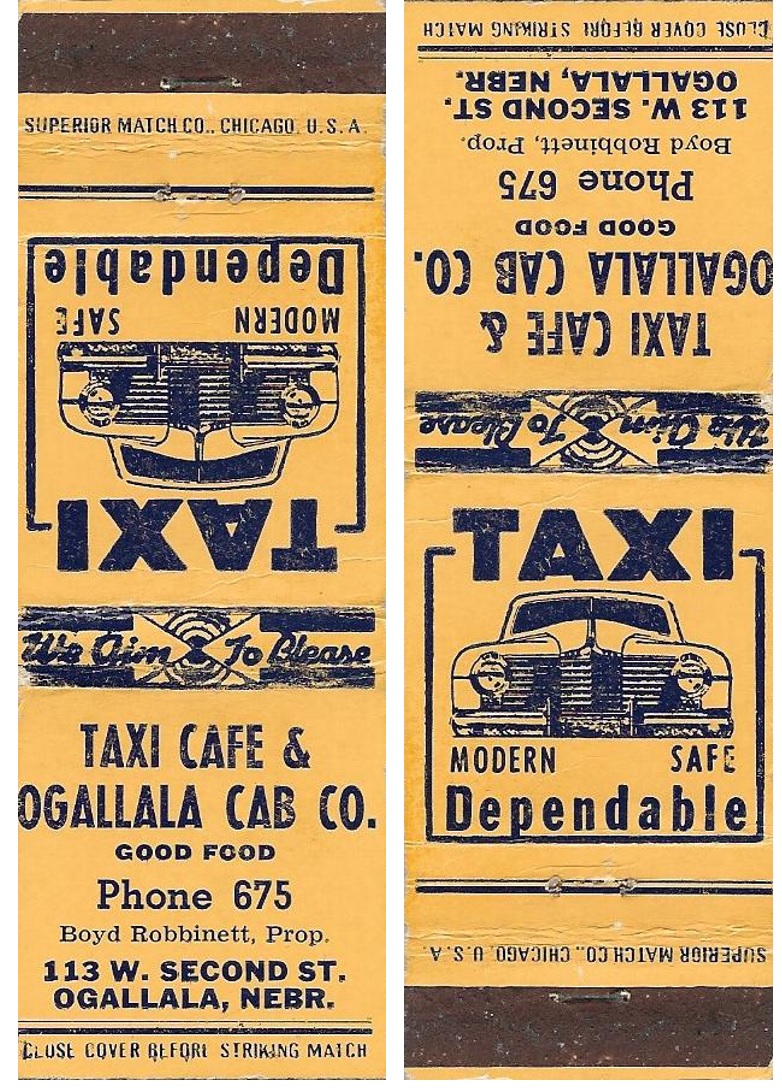 Boyd Robinett (sic) was listed in the 1948 Ogallala telephone book, but not Ogallala Cab or the Taxi Cafe.