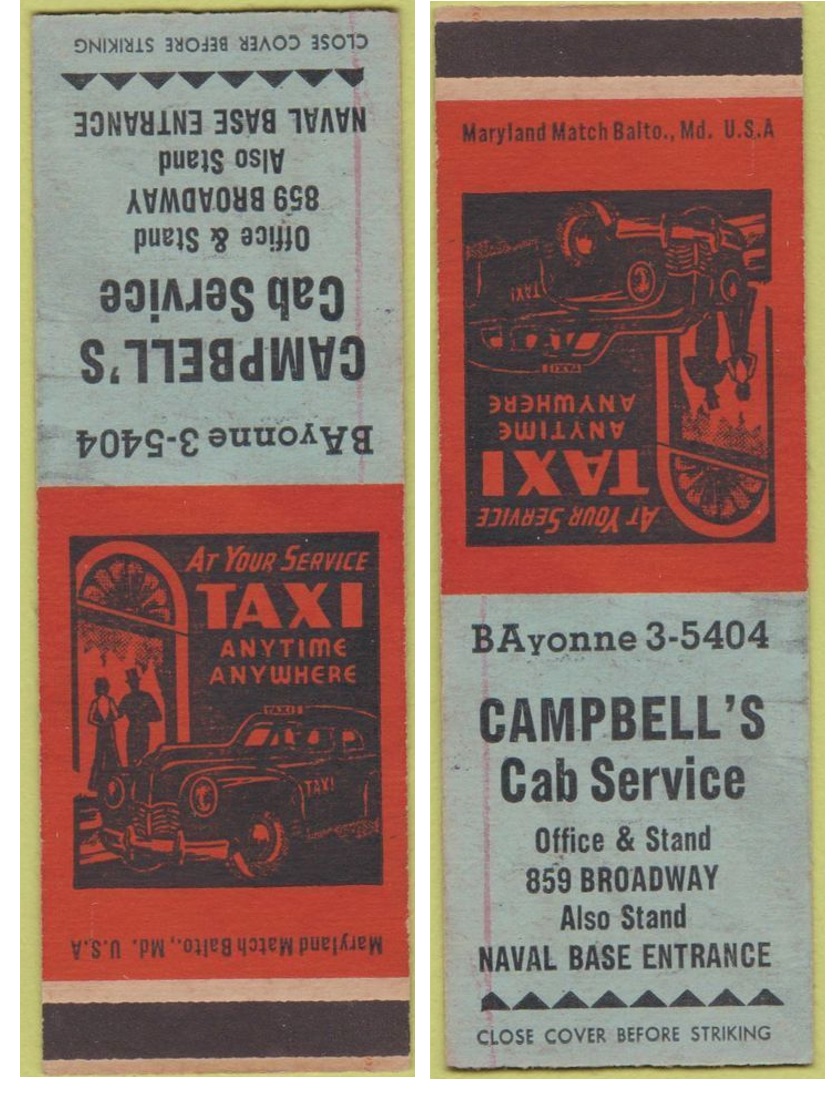 The five-digit phone numbers suggests that City Service and Yellow Cab (previous page) were contemporaries. Both offer 50-cent flat fares in Atlantic City, but City Service claims to be locally owned and operated.