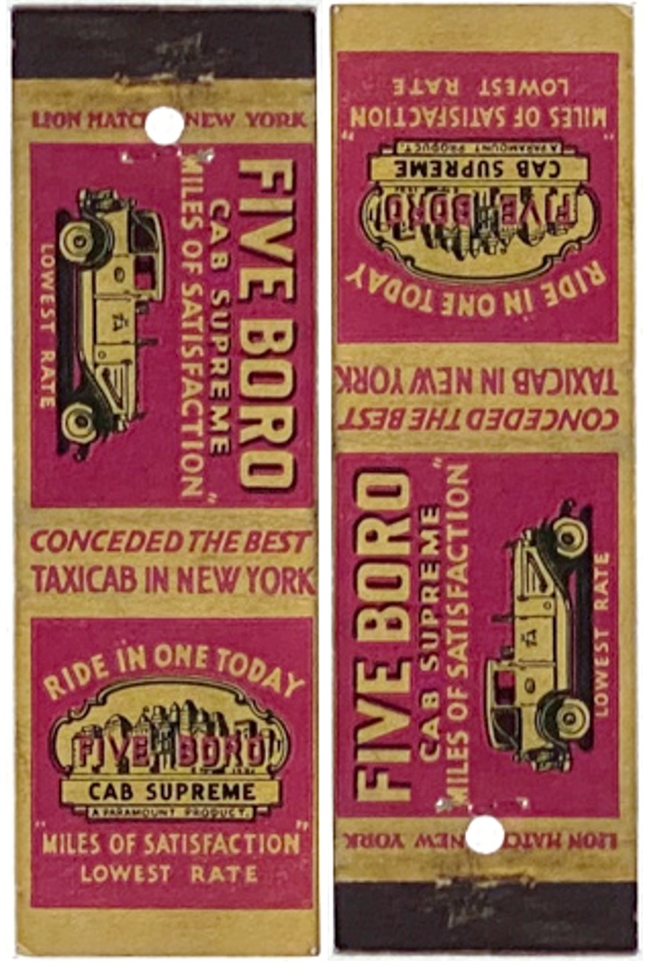 Maker: Lion Match Co. New York NY (Matchcover Collector: Taxi & Cabs)