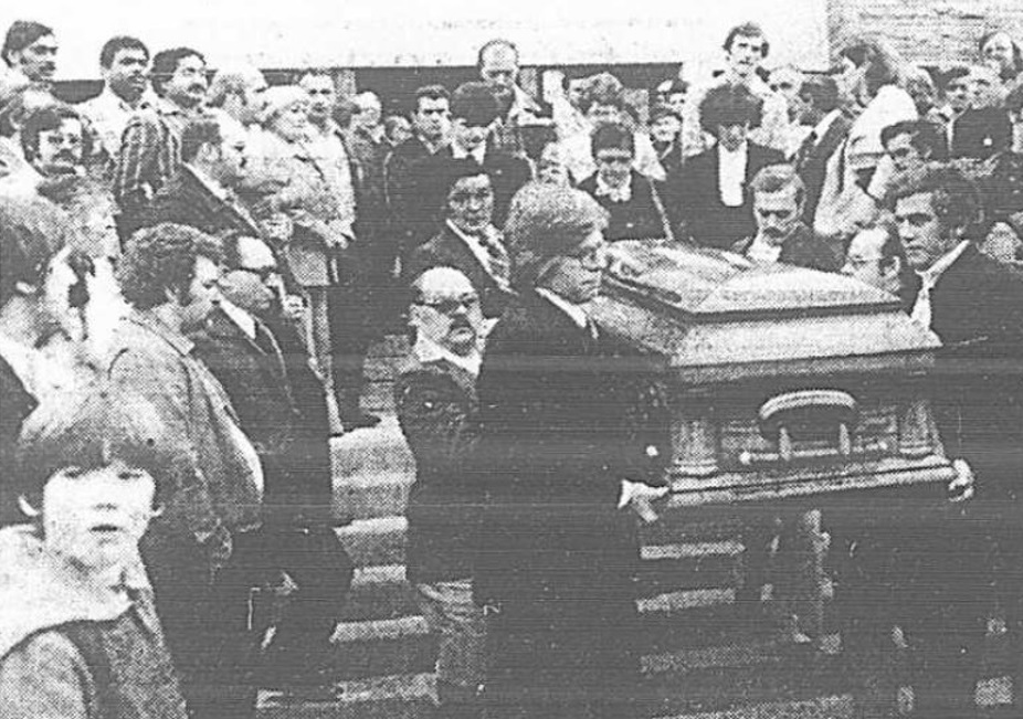 Nearly 400 taxi drivers attended Mr. Giroux's funeral and formed a procession that accompanied his remains to Montréal's Côte des Neiges Cemetery . (Source: René Picard photo (detail), La Presse, Saturday November 10, 1979, p. A-22, via Bibliotheèque et Archives nationales du Québec.)