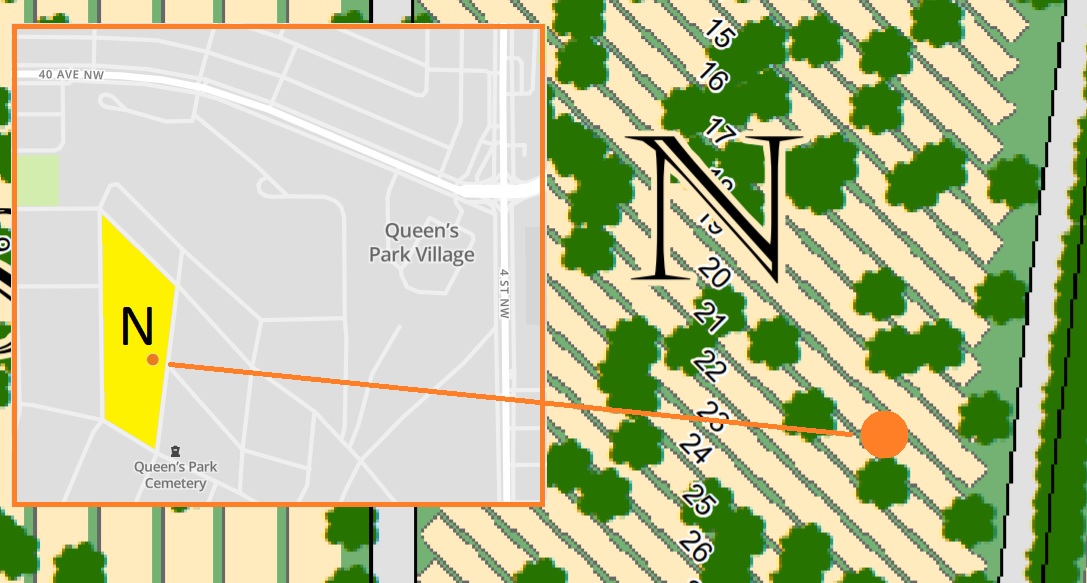 [Next column] The location of Ahmad Sabbagh's grave in Queen's Park Cemetery, Calgary (Lot 70, Block 20, Section N). Sources: Open Calgary: Cemetery Burial Records Map and Queen's Park Cemetery Map.
