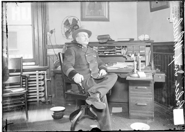 Police inspector John Wheeler sitting at a desk, looking away from the camera [1906]. DN-0004487, Chicago Daily News negatives collection, Chicago History Museum; search the photo ID number at the American Memory web site for more information.)